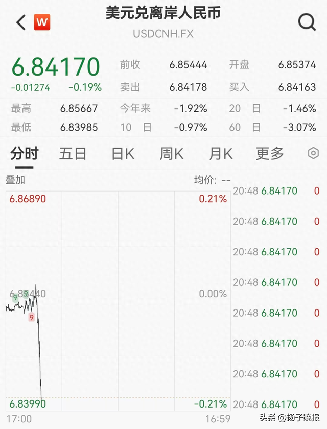凤凰彩票官网app 东说念主民币升破6.85,创3年新高